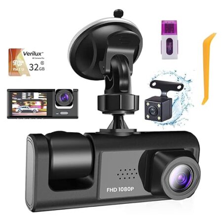 WOLFBOX G880 – 3 Channel Car Dash Camera with 1080P – Front Camera 1080P- Rear Camera 1080P – Inside Camera & 128GB Storage